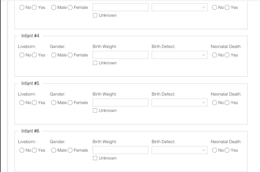 1. Pregnant: Mark Yes or No to confirm a patient's pregnancy
