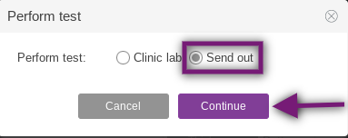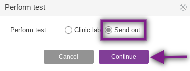 If your clinic has an in-house hormone analyzer integration, the user will be prompted to select Clinic lab or Send out. Click the radio button for Send out and click Continue.