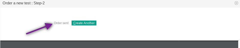 This screen will confirm Order Sent. You will be given the option to Create Another, however, any tests added in this manner will not populate and result in Artisan. You will need to repeat the instructions in this article if you need to create a second lab order.
