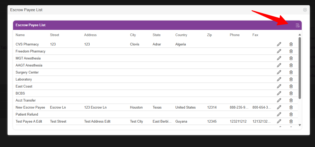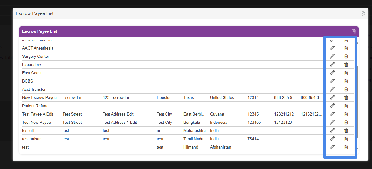 Click on the pencil icon to make any edits or click the trash can icon to delete that Payee entry.