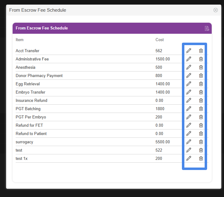 Click on the pencil icon to make any edits or click the trash can icon to delete that From Escrow item.