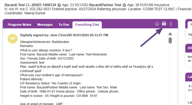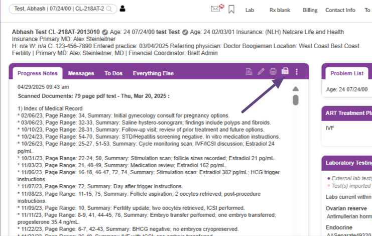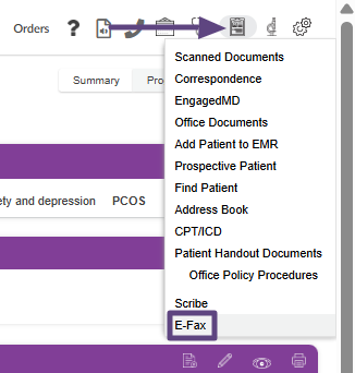 In the above example, we are sending an e-fax of the progress notes. Click on the e-fax icon.