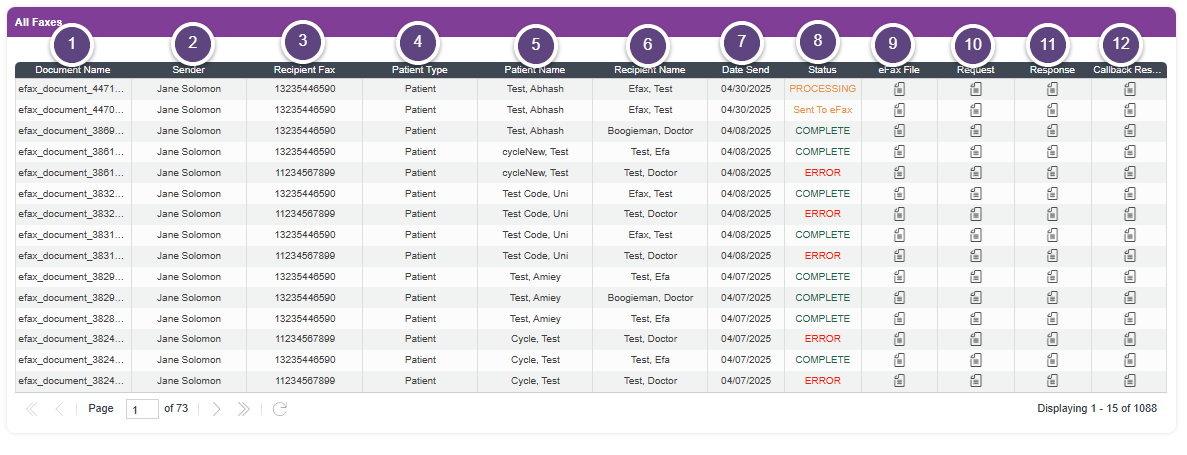 All e-faxes sent will be housed in this log in the order that they were sent, starting with most recent to the oldest e-fax.