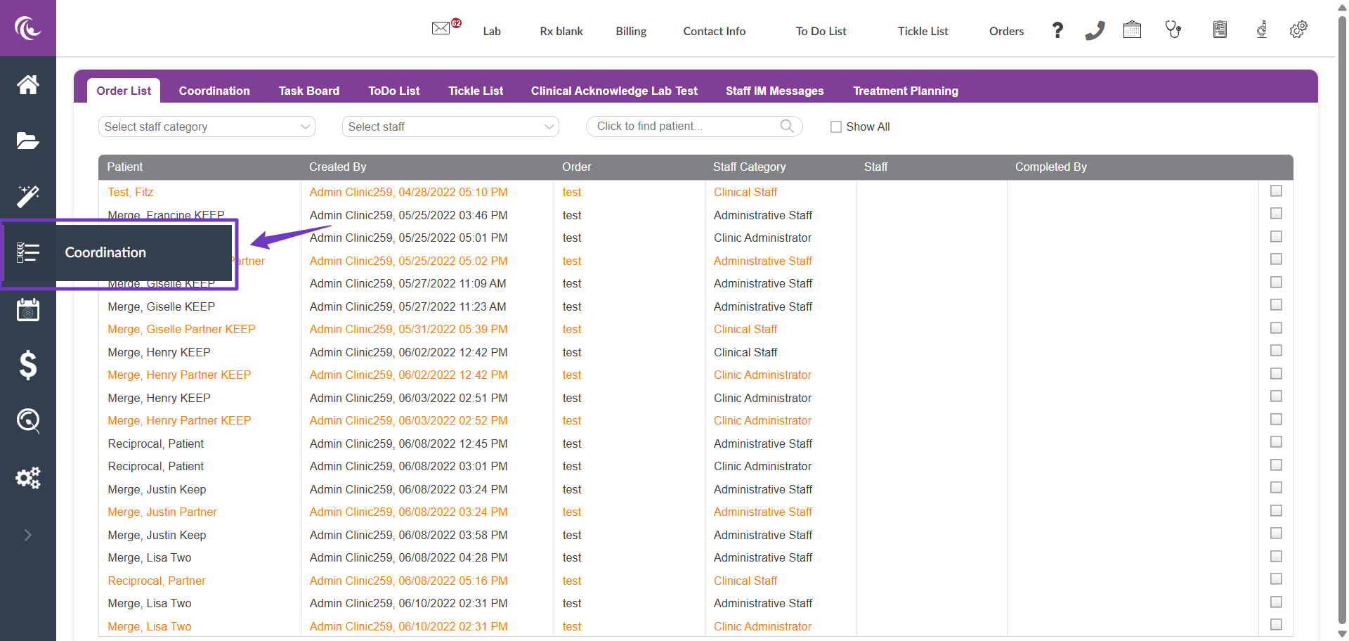 The tools in Coordination allow the practice to view a patient's status as they prepare to do their treatment cycle. This is an organized way to determine if a patient has completed the steps necessary before proceeding with their cycle.
