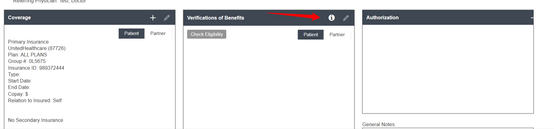 Benefits Date Information - shows effective date of patient/partner’s policy.