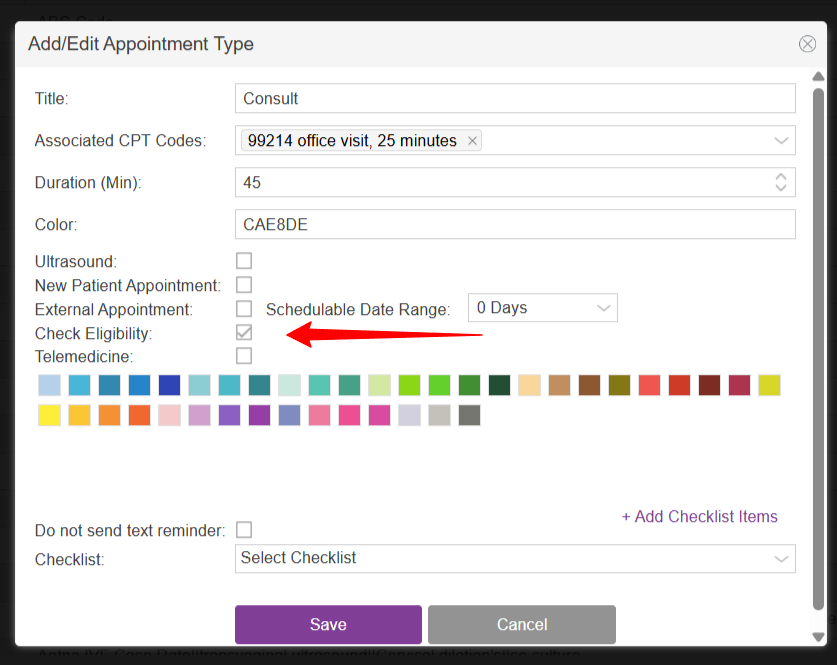 Set-up Appointment Types to Run Automatic Eligibility