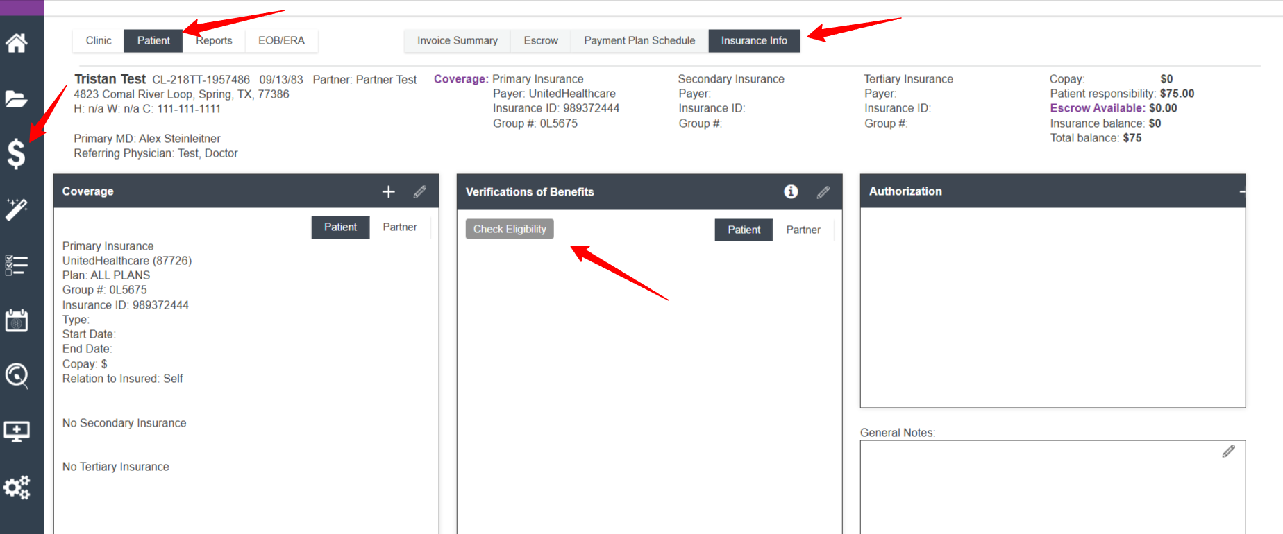 In the above example, the patient has active insurance coverage for UnitedHealthcare.