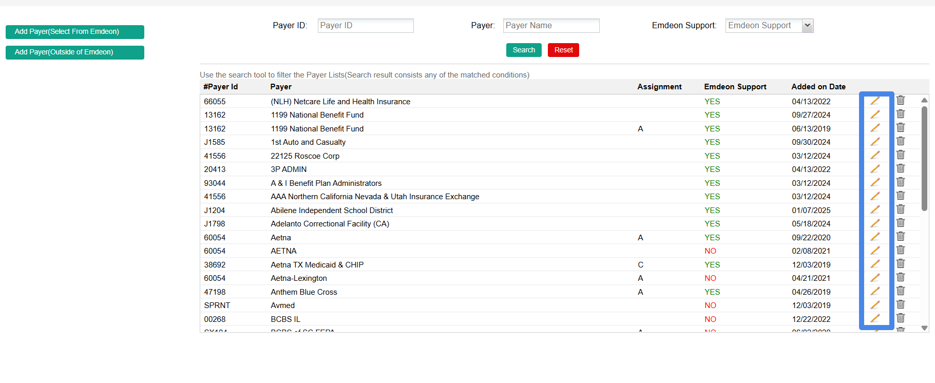 Click Save to save the details for that payer.
