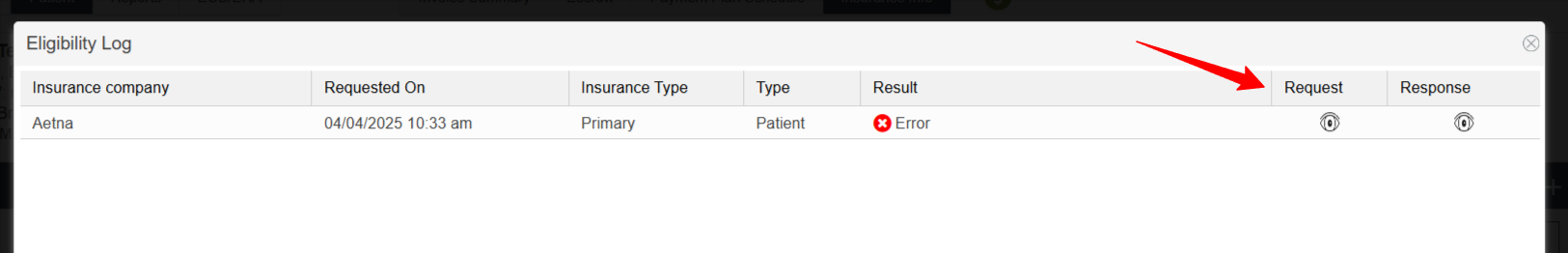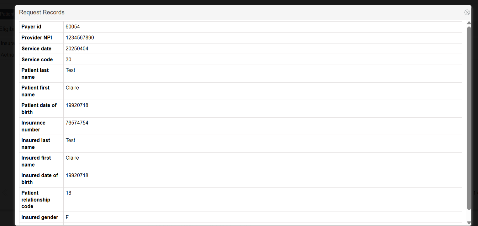 The Request allows users to see the information sent to Claim MD regarding the patient or partner’s insurance.
