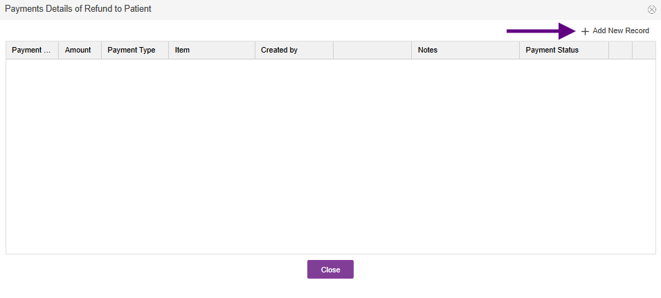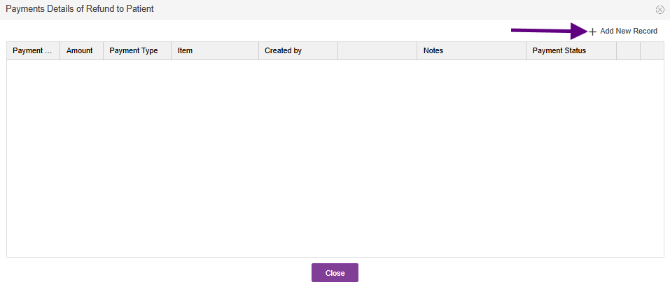 NOTE: Remember you are not collecting a payment, this 'payment' is the refund you are processing for the patient, so if you are issuing a check to the patient as a refund, select 'Check', etc.