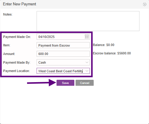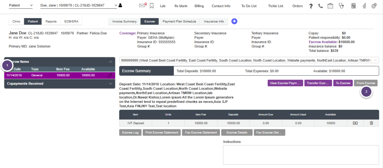 The FROM ESCROW item is now funded and money has now been deducted from the escrow balance.