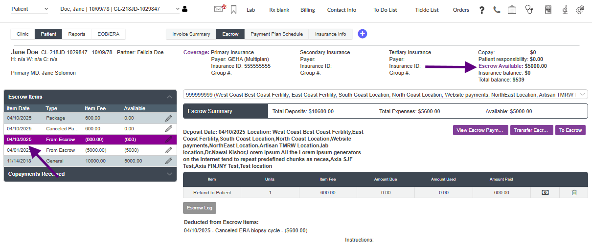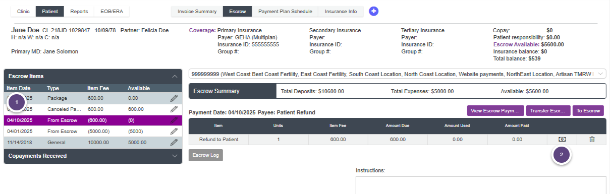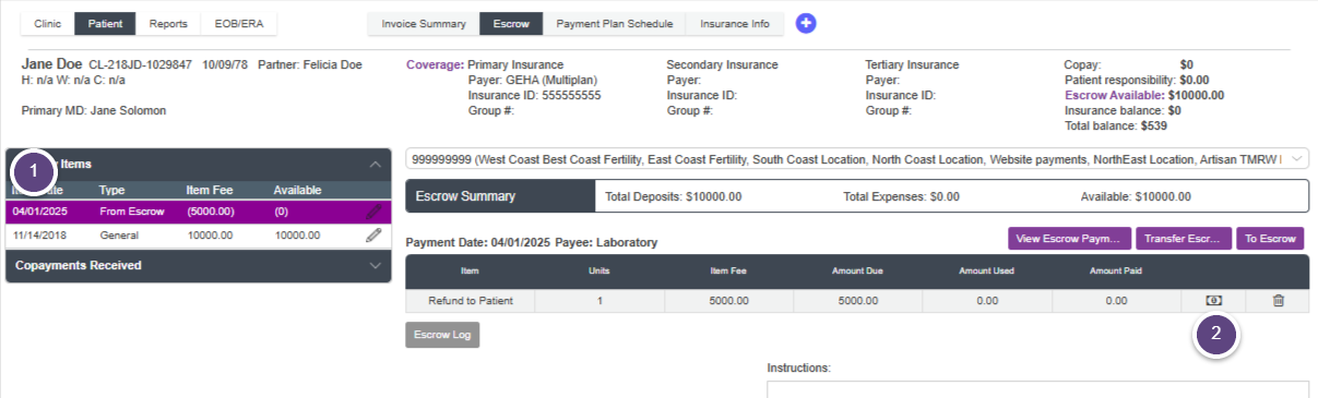 Money can be refunded from escrow either to a patient or a vendor depending on the situation.