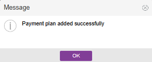 A pop-up window will appear notifying you that your payment plan was added successfully.
