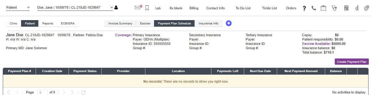 Payment Plans allow practices to create scheduled monthly payments for patients unable to pay their entire outstanding balance.