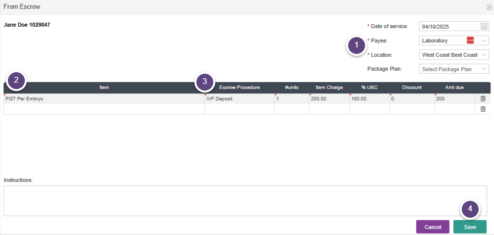 To create an expense, or a From Escrow Payment to a Payee or someone outside the practice, go to the patient's Escrow account.