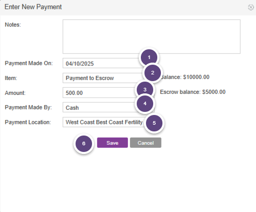 3. Enter the payment amount. The Escrow balance will appear to the right for reference purposes.