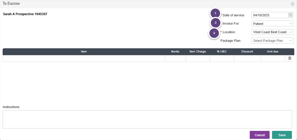 ** For general escrow items not related to a package, disregard the package dropdown option.