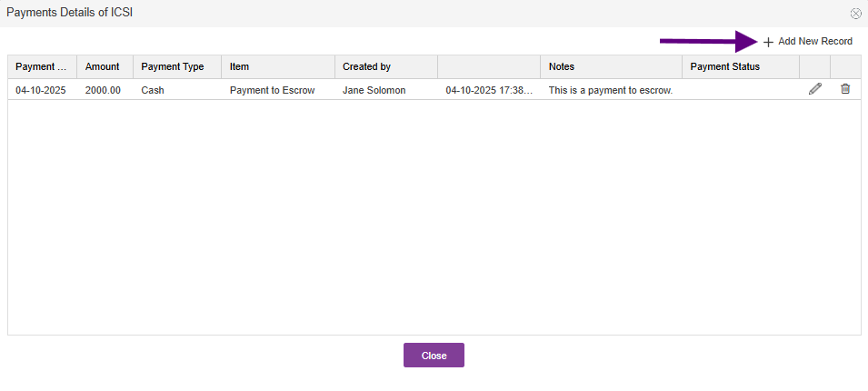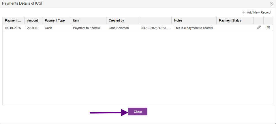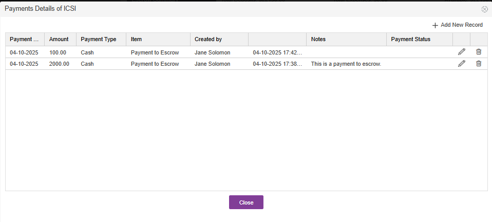 Multiple payments for funding, for example on different days, can be added to the Escrow account. Click the Dollar sign next to the IVF Deposit that was previously created.