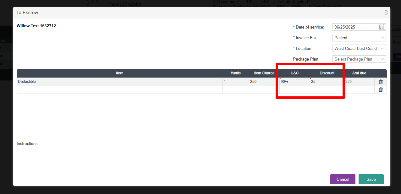 When giving a discount on a given escrow item. You have the ability to discount this by a percentage or as a whole number by the U&C section in escrow.