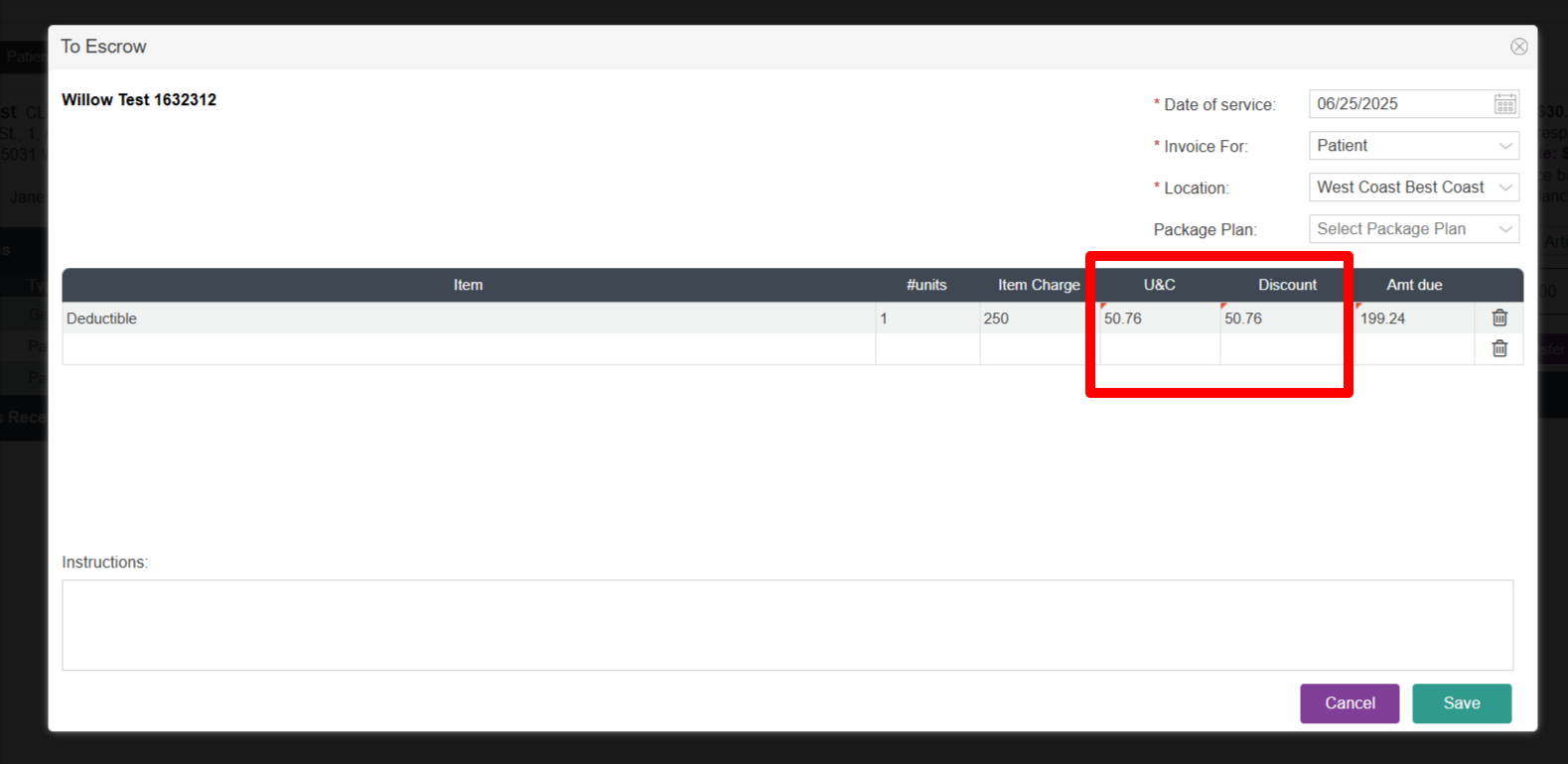 When discounting in escrow you also have the ability to discount the item charge by a whole number by entering the whole number you would like to remove from the amount due in the U&C.
