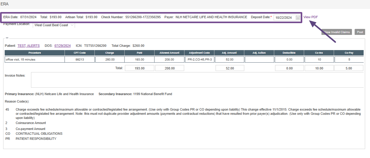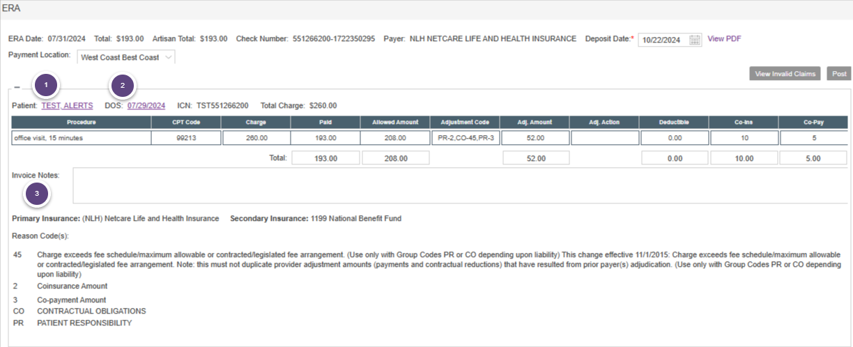 Click on the patient’s name in the green button and this will bring up their ERA view for that specific date of service.