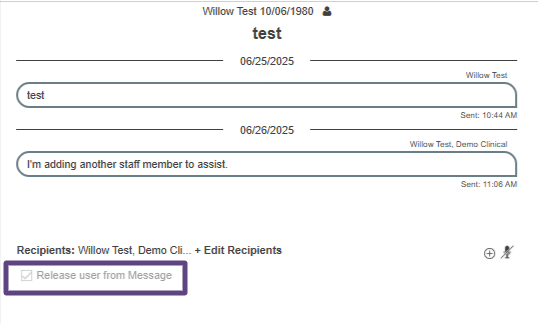 Please note, users are only able to release themselves from message threads where there is another staff member attached.